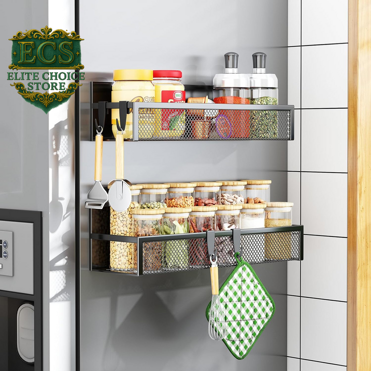 • Effortless Installation: No tools or drilling needed! Simply attach the magnetic spice racks to your fridge or any iron surface and start organizing your kitchen in seconds.